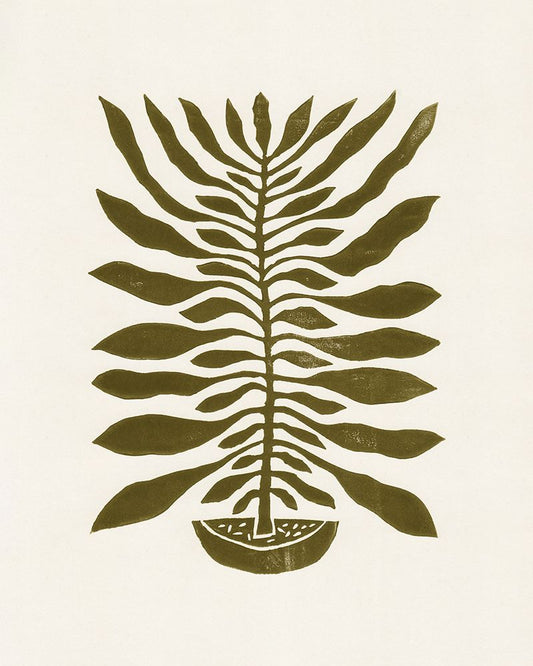 Modern Plant / Lino Print Black Ornate Wood Framed Art Print with Double Matting by Galitsyna, Alisa