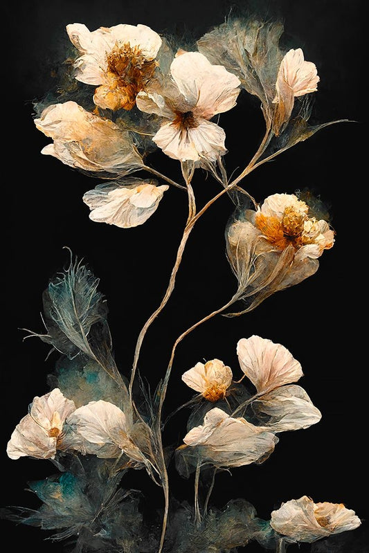 Gentle Pink Dry flowers Black Ornate Wood Framed Art Print with Double Matting by Treechild