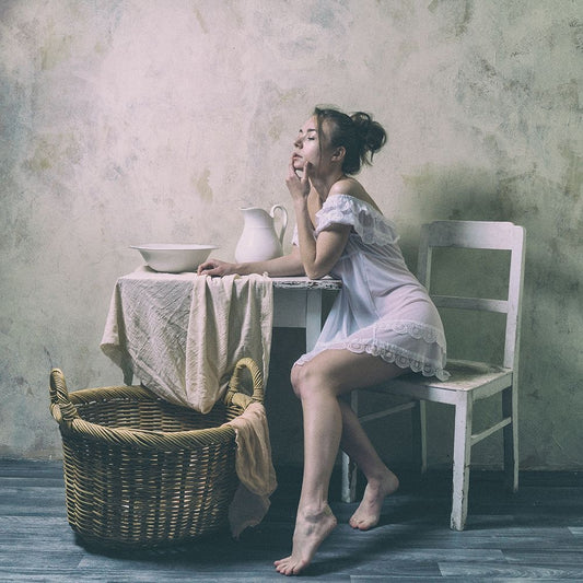 The Laundress Black Ornate Wood Framed Art Print with Double Matting by Franke, Ruth