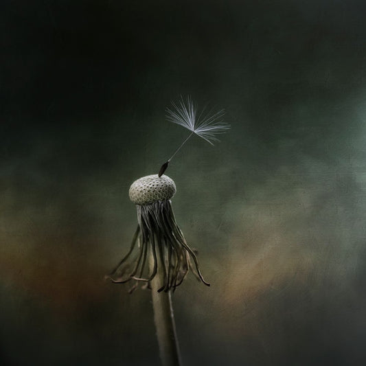 Still life with dandelion Black Ornate Wood Framed Art Print with Double Matting by Hrabinsky, Peter