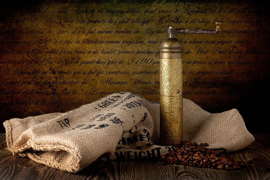 Still Life With Mocha Grinder Black Ornate Wood Framed Art Print with Double Matting by Richter, Regine