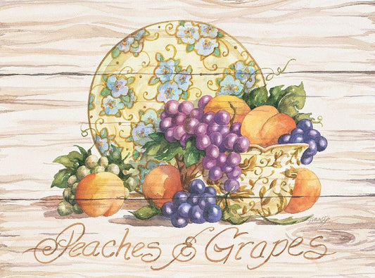 Peaches and Grapes White Modern Wood Framed Art Print with Double Matting by Unknown