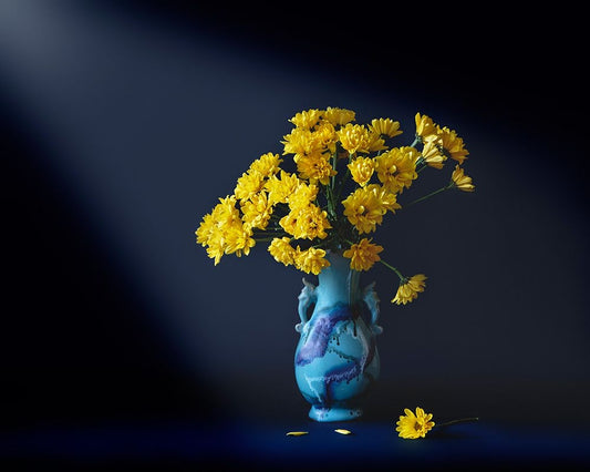 Yellow flowers Black Ornate Wood Framed Art Print with Double Matting by Zhang, Hannah