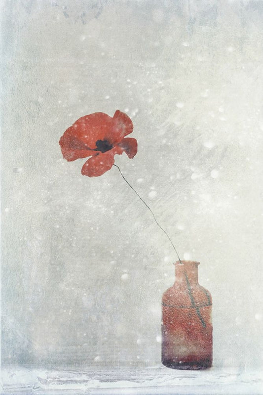 Winter Poppy Black Ornate Wood Framed Art Print with Double Matting by Devos, Delphine