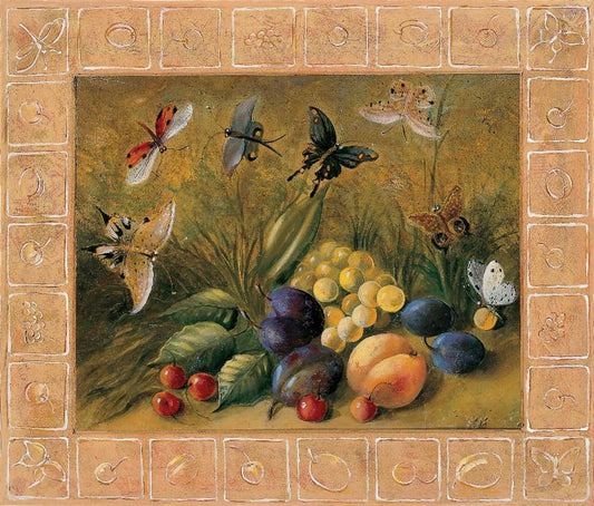 Fruits and papillons Black Ornate Wood Framed Art Print with Double Matting by du Ciel, Milieu