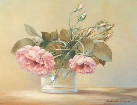 Spring roses Black Ornate Wood Framed Art Print with Double Matting by Scholnhammer, Heinz