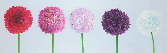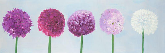 PINK FLOWERS WITH BLUE LEAVES White Modern Wood Framed Art Print with Double Matting by Atelier B Art Studio