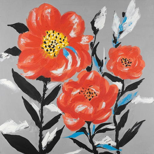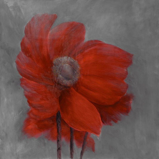Two Red Flowers on a Grayscale Background White Modern Wood Framed Art Print with Double Matting by Atelier B Art Studio
