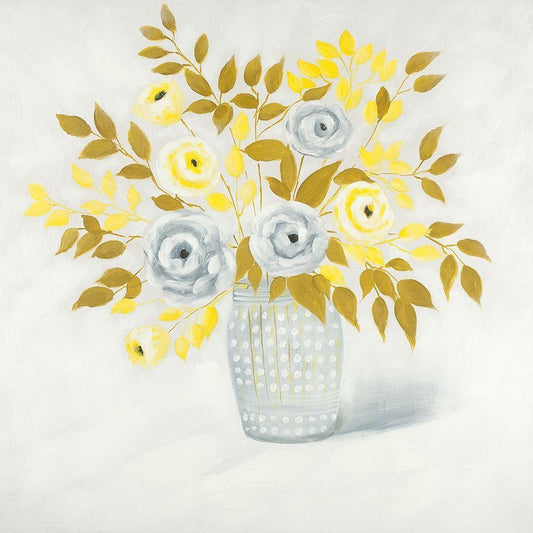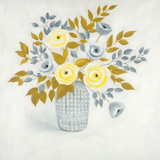 BLUE AND YELLOW FLOWERS IN A VASE White Modern Wood Framed Art Print with Double Matting by Atelier B Art Studio