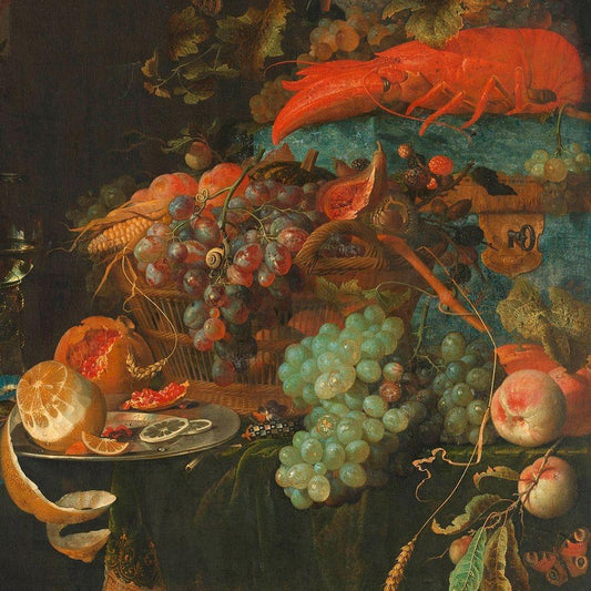 Still Life with Fruit and a Goldfinch (detail) Black Ornate Wood Framed Art Print with Double Matting by Mignon, Abraham