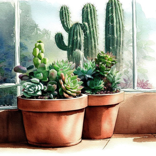 Cacti and Succulents I Black Ornate Wood Framed Art Print with Double Matting by Dundon, Denise