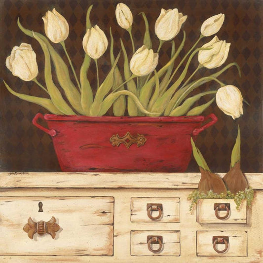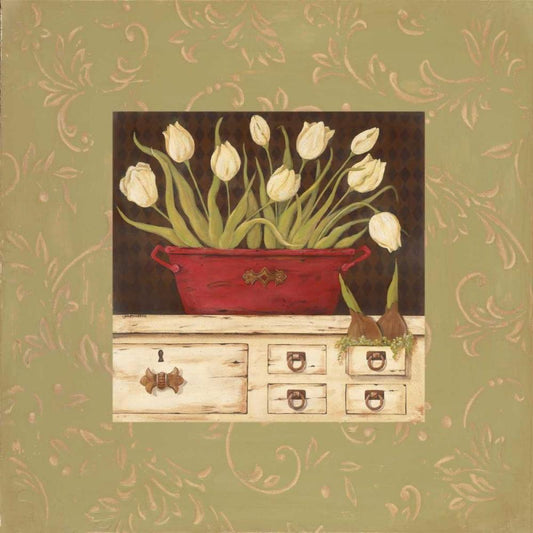 Villa Tulips Black Ornate Wood Framed Art Print with Double Matting by Moulton, Jo
