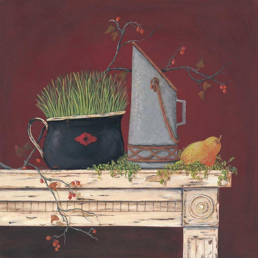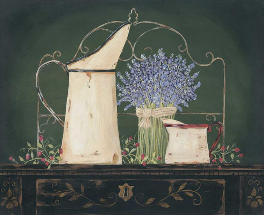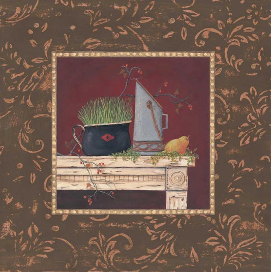 Farm Table Black Ornate Wood Framed Art Print with Double Matting by Moulton, Jo