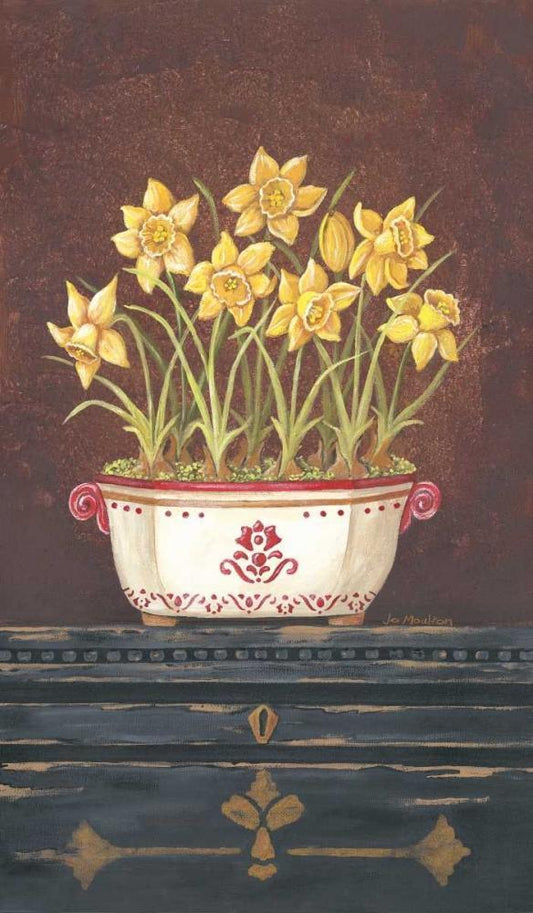 Asian Daphodile Floral Black Ornate Wood Framed Art Print with Double Matting by Moulton, Jo