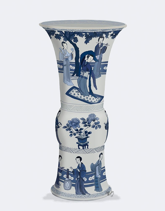 Chinoiserie Vase Dancer Blue Black Ornate Wood Framed Art Print with Double Matting by Fab Funky