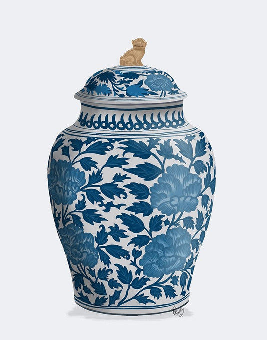 Chinoiserie Vase Golden Lion Blue Black Ornate Wood Framed Art Print with Double Matting by Fab Funky