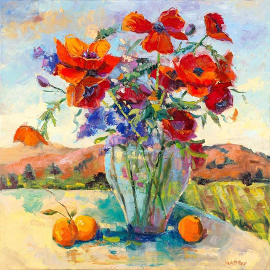 Red Poppies Black Ornate Wood Framed Art Print with Double Matting by Johnston, Maxine