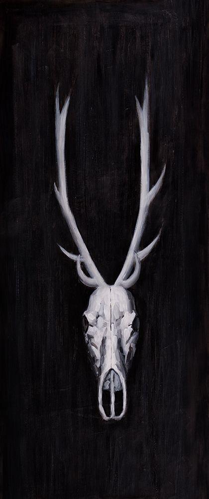 DEER SKULL ON BLACK BACKGROUND White Modern Wood Framed Art Print with Double Matting by Atelier B Art Studio