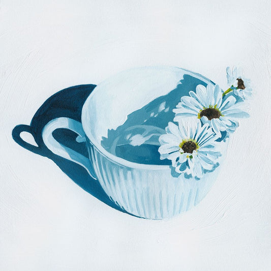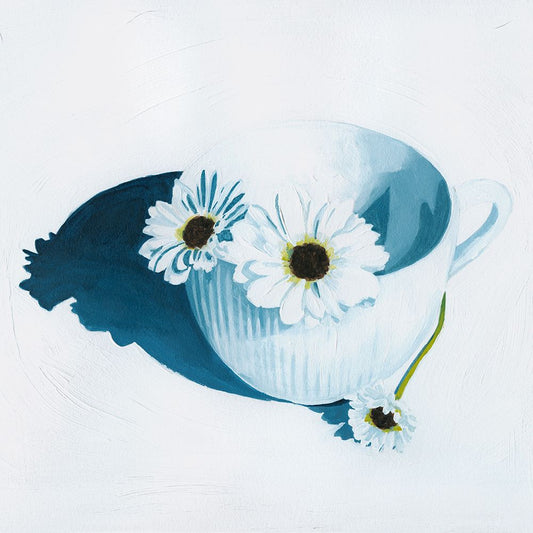 Teacup Daisies I Black Ornate Wood Framed Art Print with Double Matting by Popp, Grace