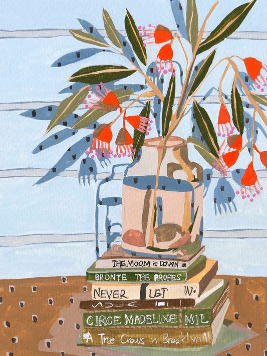 Vase and Books I Black Ornate Wood Framed Art Print with Double Matting by Wang, Melissa