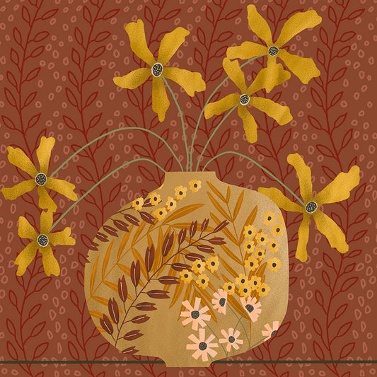 Autumn Flower Vase I Black Ornate Wood Framed Art Print with Double Matting by Moore, Regina
