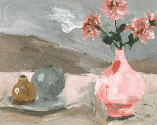 Vase of Pink Flowers V Black Ornate Wood Framed Art Print with Double Matting by Wang, Melissa