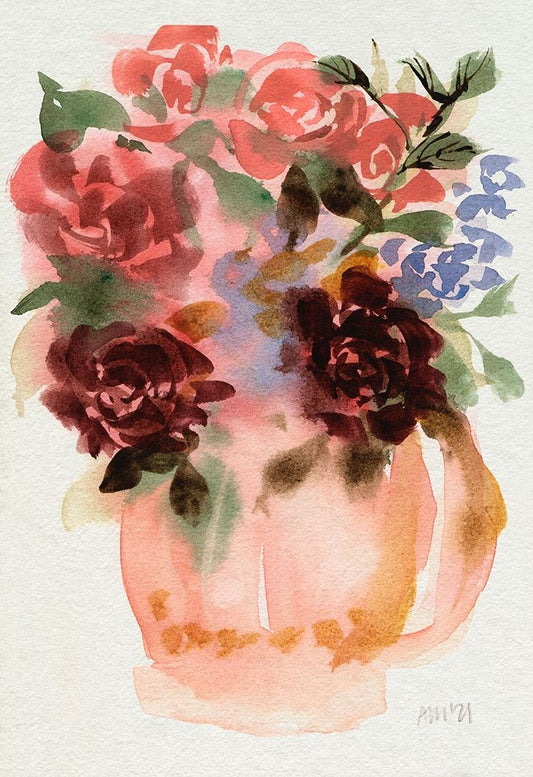 Mauve Bouquet in Teapot I Black Ornate Wood Framed Art Print with Double Matting by Zwara, Ania