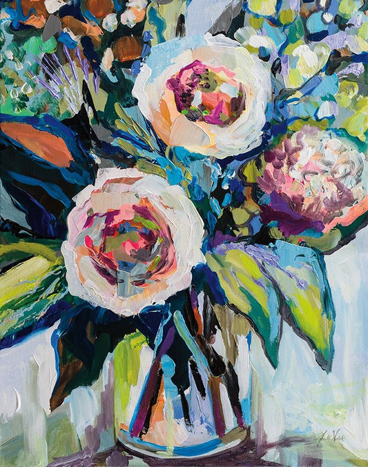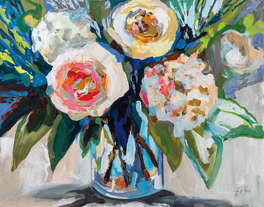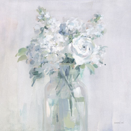 Shades of White Bouquet Black Ornate Wood Framed Art Print with Double Matting by Nai, Danhui