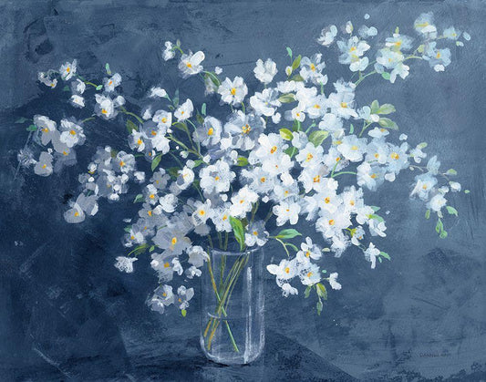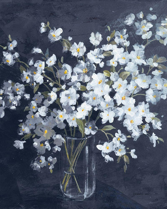 Fresh White Bouquet Dark Blue Black Ornate Wood Framed Art Print with Double Matting by Nai, Danhui