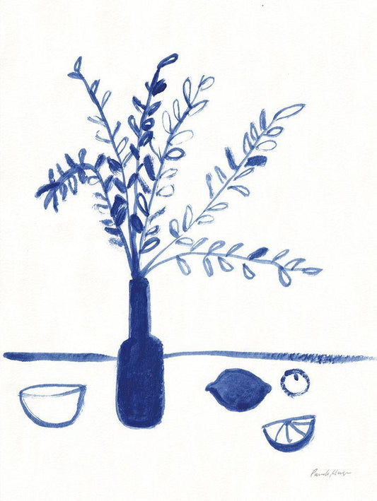 Fresh White Bouquet Indigo Crop Black Ornate Wood Framed Art Print with Double Matting by Nai, Danhui