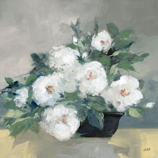 Fresh White Bouquet Gray Crop Black Ornate Wood Framed Art Print with Double Matting by Nai, Danhui