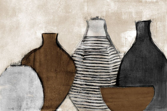 Earth Toned Urns Black Ornate Wood Framed Art Print with Double Matting by Loreth, Lanie