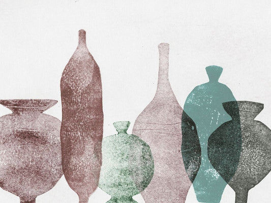 Vases 1 Teal Black Ornate Wood Framed Art Print with Double Matting by Folcarelli, Pernille