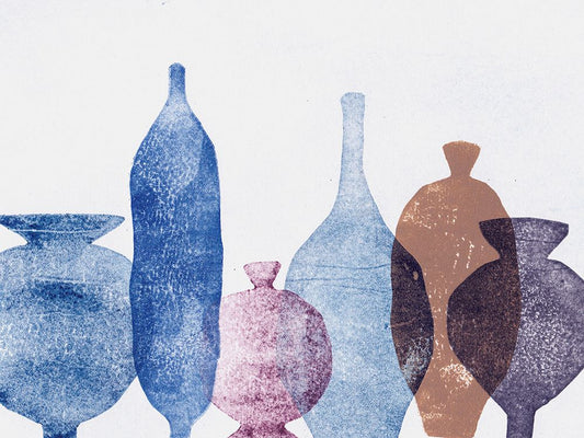 Vases 1 Blue Black Ornate Wood Framed Art Print with Double Matting by Folcarelli, Pernille