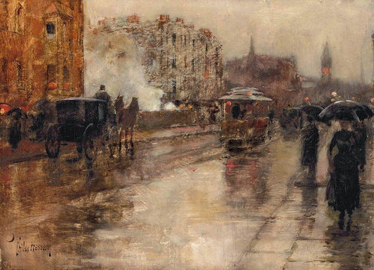 Rainy Day-Boston White Modern Wood Framed Art Print with Double Matting by Hassam, ChildeRegular price From $39.99 USDRegular priceUnit price per-