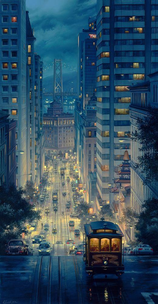 Across The Bay White Modern Wood Framed Art Print with Double Matting by Simandle, Marilyn