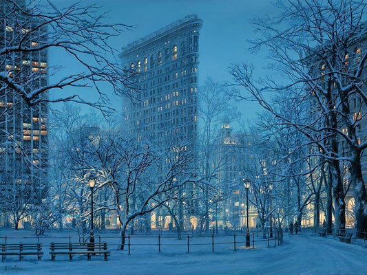 Flatiron Rain White Modern Wood Framed Art Print with Double Matting by Lushpin, E.
