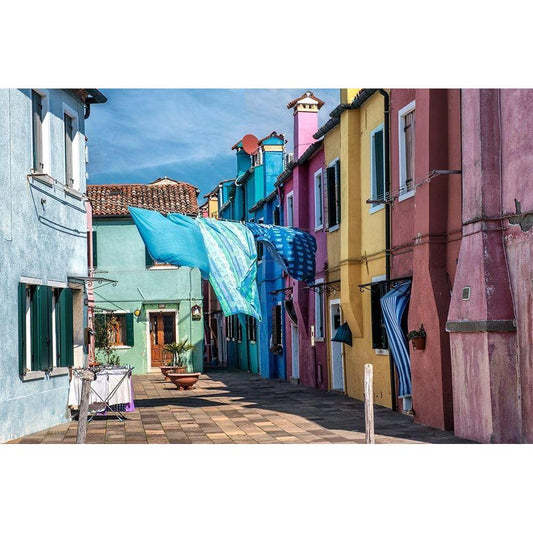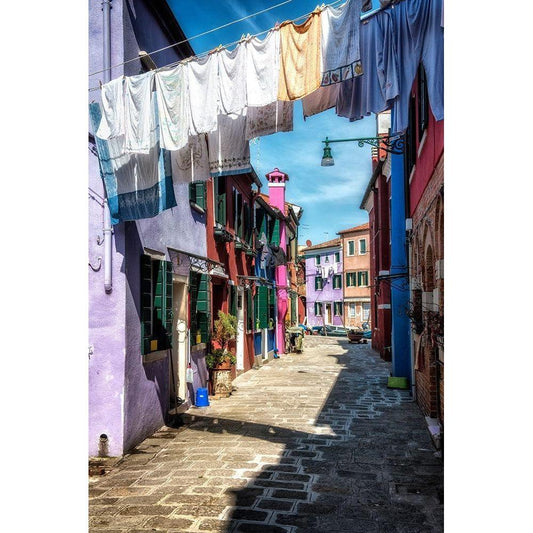 Burano Wash Day Black Modern Wood Framed Art Print by Head, Danny