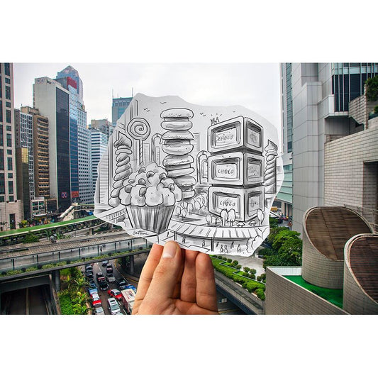Pencil Vs Camera - City Candies Black Modern Wood Framed Art Print by Heine, Ben