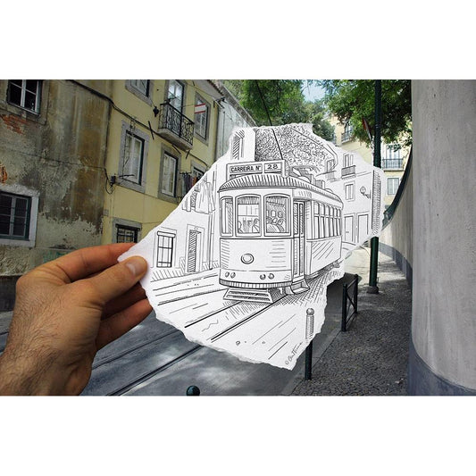 Pencil Vs Camera 4 - Lisbon Tram Black Modern Wood Framed Art Print by Heine, Ben