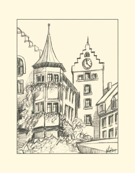 BandW Sketches of Downtown VI White Modern Wood Framed Art Print with Double Matting by Harper, Ethan