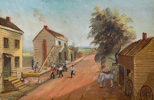 House Raising White Modern Wood Framed Art Print with Double Matting by Chappel, William P.Regular price From $39.99 USDRegular priceUnit price per-