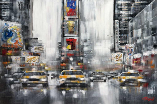 Taxi I White Modern Wood Framed Art Print with Double Matting by Madjid
