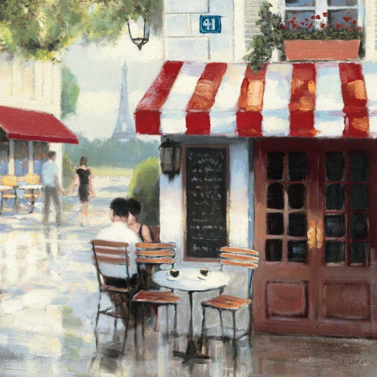Relaxing at the Cafe I White Modern Wood Framed Art Print with Double Matting by Wiens, James