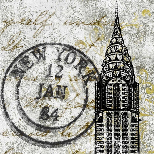 NY Chalk Border White Modern Wood Framed Art Print with Double Matting by Sundance Studio