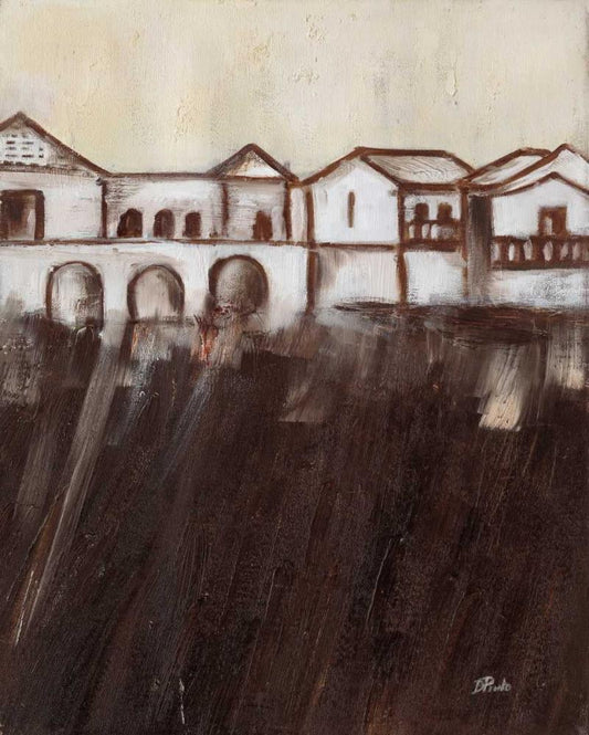 Pueblito I White Modern Wood Framed Art Print with Double Matting by Arenas, Nelly