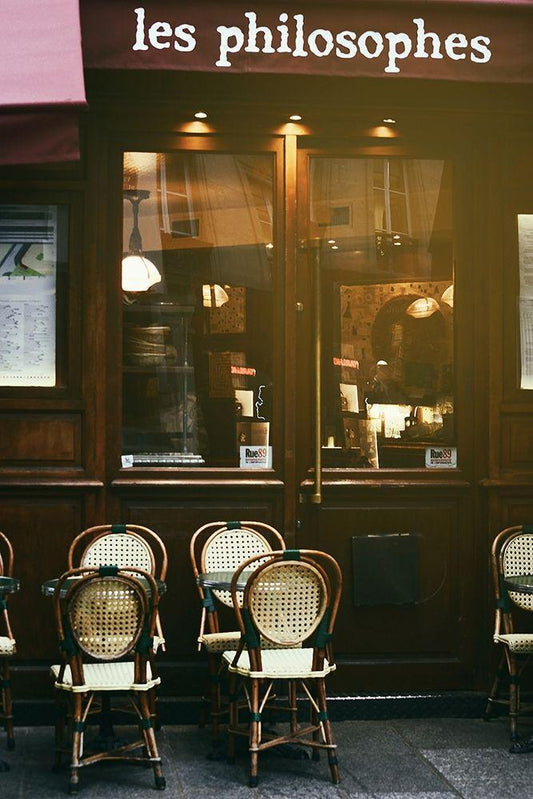 Les Philosophes Cafe Paris White Modern Wood Framed Art Print with Double Matting by Okula, Carina