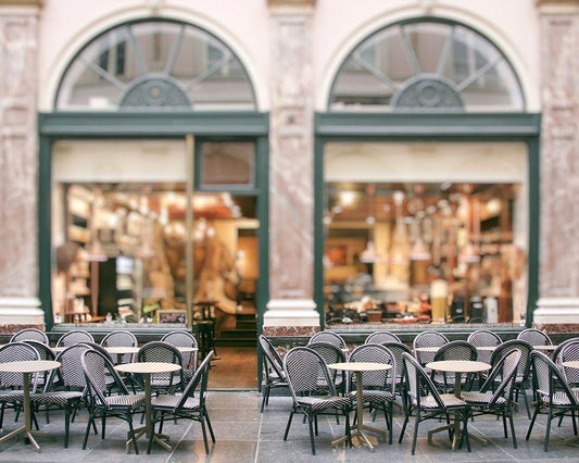 Paris Cafe White Modern Wood Framed Art Print with Double Matting by Okula, Carina