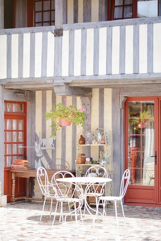 Cafe Chairs on Quiet Village Street White Modern Wood Framed Art Print with Double Matting by Okula, Carina