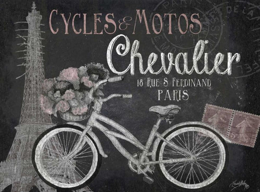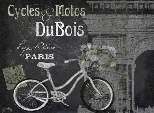 Paris Bike on Chalk Border I White Modern Wood Framed Art Print with Double Matting by Medley, Elizabeth